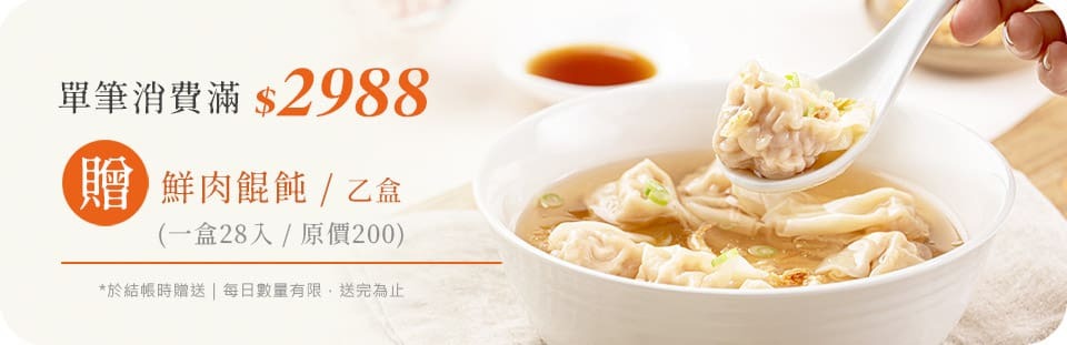 全店,【滿額贈】滿$2988 再送鮮肉餛飩乙盒(28入)