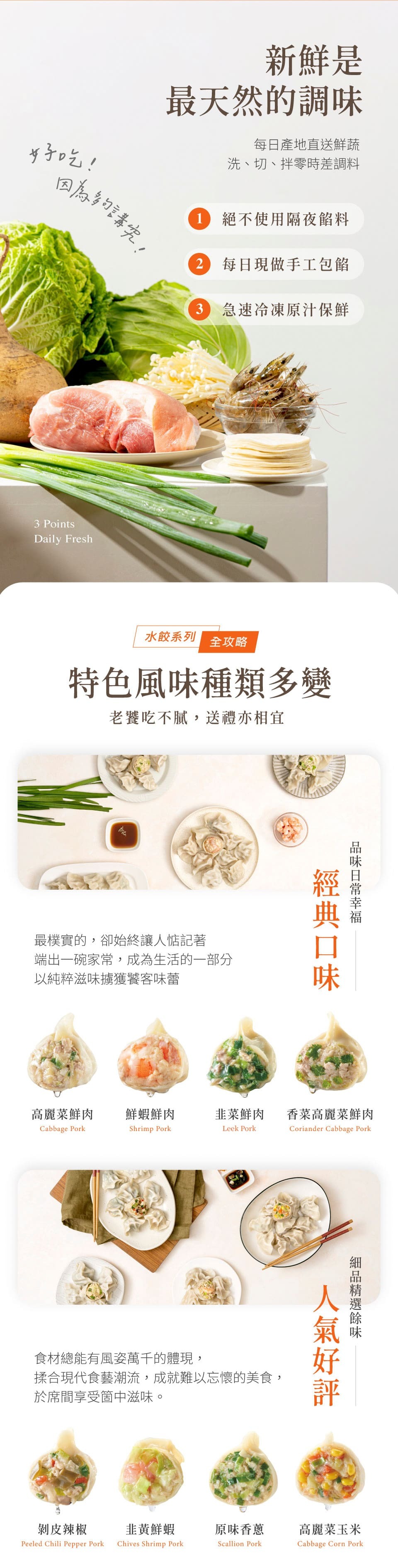 鮮甜清脆的高麗菜,搭配細緻甜美的契作鮮蝦,多層次的味覺饗宴,水點心又多一道必買口味。